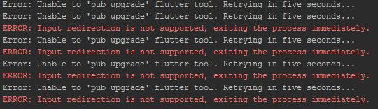 等待 0 秒,按 CTRL+C 退出...错误:无法'发布升级'颤振工具。五秒后重试...